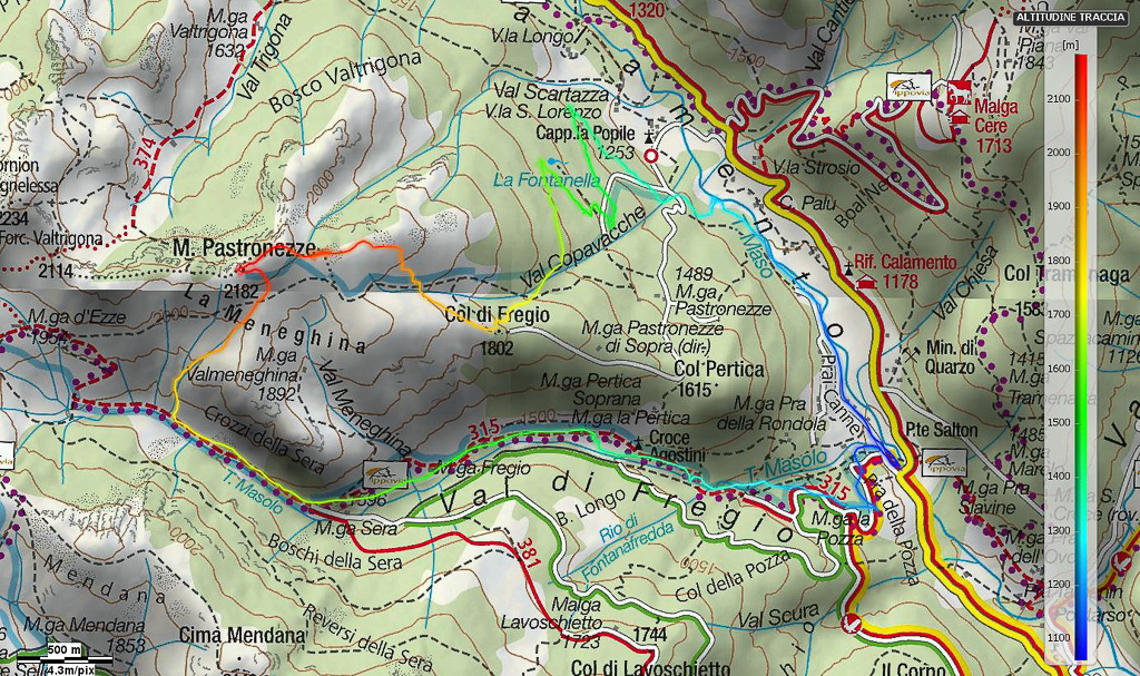2015_0228_Ponte Salton, Prai Cannei, Val Capovacche, Col di Fregio, Monte Pastronezze, Crozzi della Sera, M.ga Sera, M.ga Fregio, M.ga la Pertica, 315, Ponte Salton